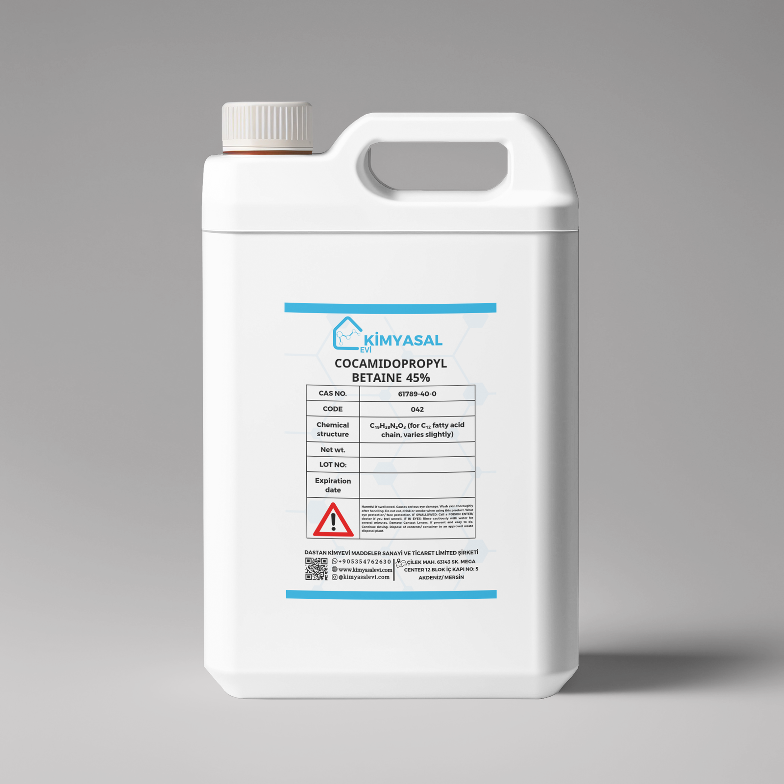 Cocamidopropyl Betaine 45% kozmetikte Hindistan cevizi yağından türetilmiş amfoterik yüzey aktif madde olarak kullanılır. Şampuan, duş jeli, yüz temizleyiciler ve bebek ürünlerinde yaygındır. Hafif temizleyici özelliğe sahiptir, köpüğü artırır ve SLS/SLES gibi anyonik yüzey aktiflerin cilt üzerindeki tahrişini azaltır. Zengin ve yumuşak köpük sağlar, güçlü temizleyicilerin neden olabileceği kuruluk ve tahrişi düşürür, hassas ciltler ve bebek ürünleri için uygundur. Kullanım oranı genellikle %4 – %15 aktif madde şeklindedir; ticari formu %45’lik çözelti olduğundan istenen orana ulaşmak için su ile seyreltilir. Su fazına eklenir ve hazırlık sırasında aşırı köpük oluşmaması için yavaş ve nazik şekilde karıştırılır. Anyonik (SLES gibi) ve katyonik (saç kremi bileşenleri gibi) yüzey aktiflerle uyumludur ve önerilen oranlarda cilt ve saç için güvenlidir.